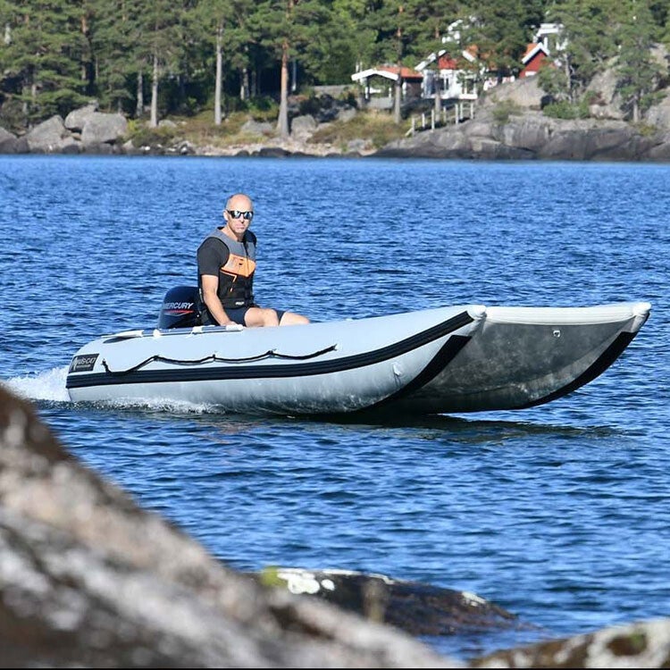 De 3.8 meter rubberboot met catamaran-romp biedt een combinatie van stabiliteit, ruimte en plezier op het water. Het unieke ontwerp zorgt voor een volledig open voorkant en het grootste interieur in zijn klasse, waardoor instappen vanaf land of water moeiteloos gaat. Dankzij de stabiele catamaran-romp planeert de boot vroeg en biedt hij een sportieve en plezierige vaarervaring voor zowel volwassenen als kinderen.
